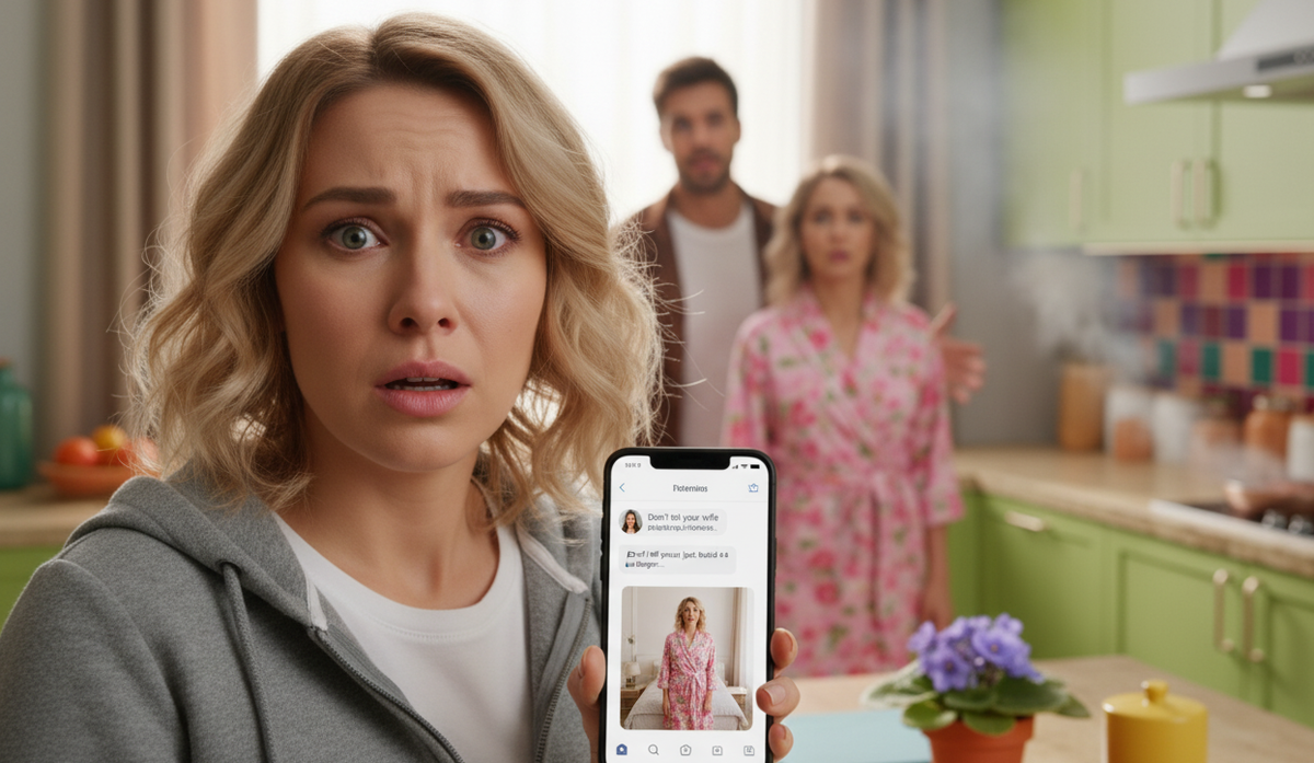Лена стояла на кухне с его телефоном в руках, а на плите подгорало мясо. На экране горела последняя фраза от Кати: "Жене ничего не говори, потерпи еще немного...". А ниже — фотография. Катька стояла в их спальне. В халате Лены. В том самом розовом, который, как она думала, потерялся год назад на курорте...