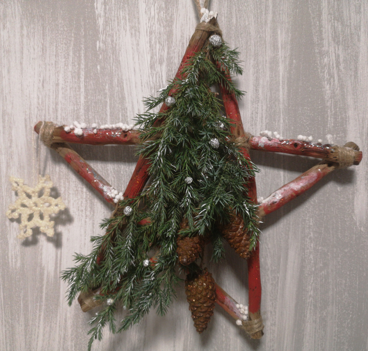 Честно признаюсь - не люблю венки. Не хочу. Последнее время всякие "клаусы", венки и прочее меня отторгают. Потому что мне больше по душе Дед Морозы, сани с лошадьми и.... звезды! Да! Я родом из советского детства и когда увидела в магазине Симферополя поделку "Звезда", сделанную из веток, сразу придумала свою интерпретацию "звезды". Я считаю красные звезды на макушках сосен знаком качества нашей советской ментальности, как у китайцев таким знаком являются бумажные фонарики. И, да. Клаус с оленями могут висеть на елках, как и мини-веночки в виде игрушек, но внизу обязательно должен стоять Дед Мороз со Снегурочкой, а на верхушке гореть красная звезда