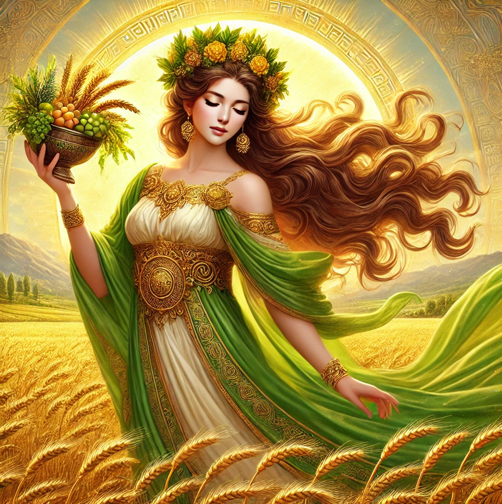 ДЕМЕТРА — одна из самых почитаемых и значимых Богинь в древнегреческой мифологии, олицетворяющая земледелие, урожай, плодородие и цикл жизни и смерти. Она была дочерью титанов Реи и Кроноса, сестрой таких Богов, как Зевс, Гера, Посейдон и Гадес. Хотя ДЕМЕТРА не всегда была самой видной фигурой среди олимпийских Богов, её влияние на жизнь людей и культуру было крайне велико, поскольку она была не только покровительницей сельского хозяйства, но и символом бесконечного цикла жизни и обновления. 1. Происхождение и родословная ДЕМЕТРА была дочерью титанов Реи и Кроноса. Как и другие её братья и сёстры, она была проглочена своим отцом Кроносом, так как тот боялся, что его дети свергнут его с трона, как он сам сверг своего отца, Урана. Однако, когда Зевс, самый младший из детей, вырос и сверг Кроноса, он освободил своих братьев и сестёр, в том числе и Деметру. 2. Деметра как Богиня урожая и плодородия ДЕМЕТРА была Богиней земли и всего, что с ней связано, особенно сельского хозяйства. Она