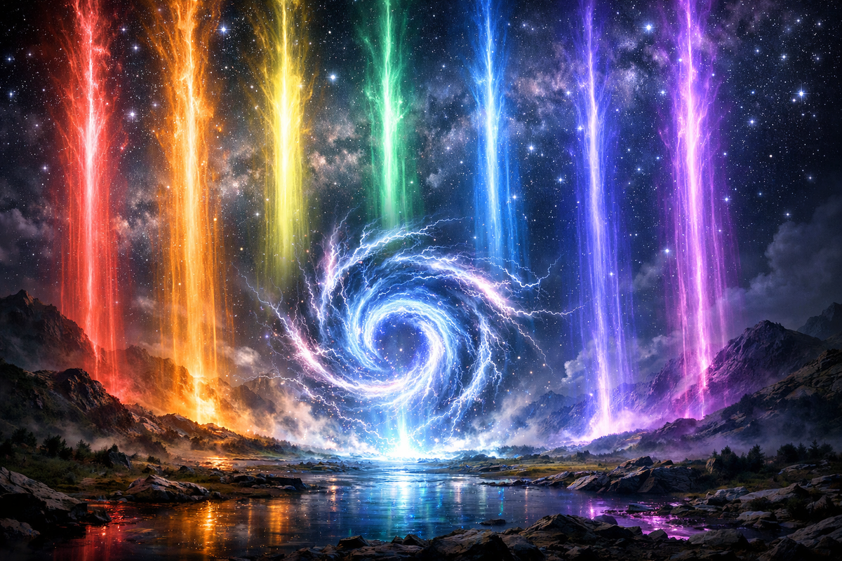 По Высшему Космическому Закону в наше время семи Великим Существам позволено активировать мощное Христово Присутствие в умах человечества. Это подобно открытию портала, через который в наш мир изливается чистый Свет. Именно этот поток наблюдался как семь световых столбов. Их послание нам: это излучение даруется нам для безграничного использования.