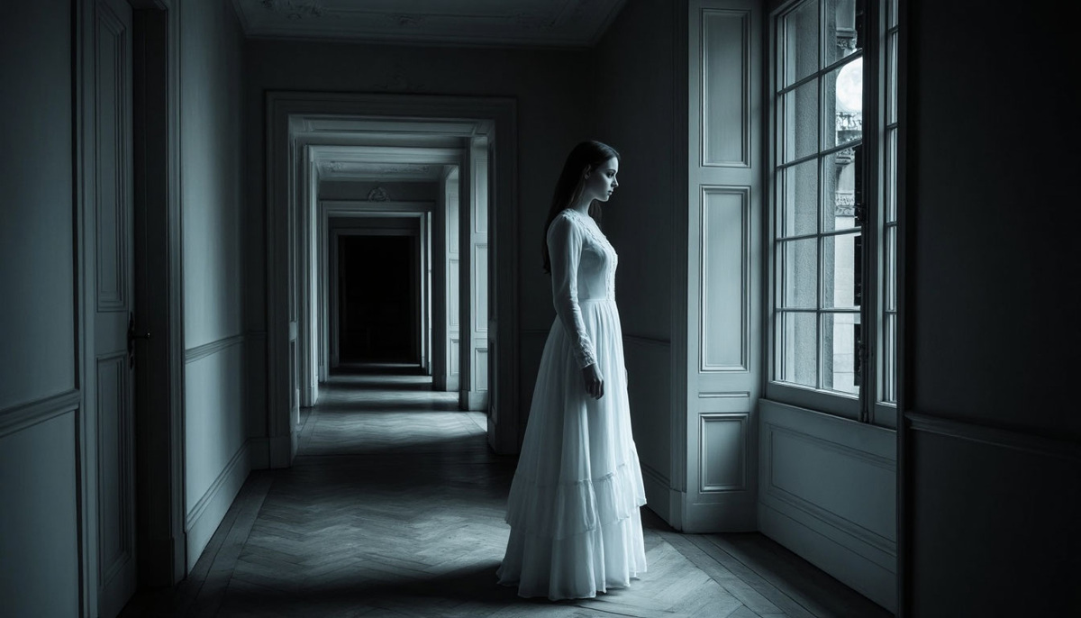 Ходит легенда, что в пустых коридорах бродит призрак — женщина в белом, чья поступь легка, как дуновение осеннего ветра. Её видят лишь избранные: те, кто задержится допоздна, кто прислушается к тишине, кто сумеет разглядеть за обыденностью отблески иного мира.