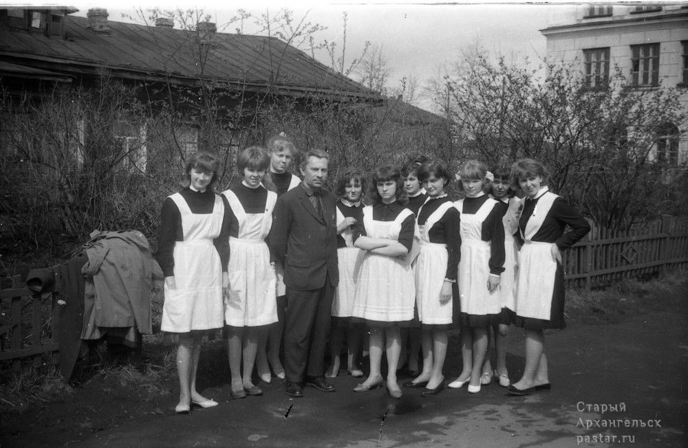 Во дворе школы №9. Начало 1960-х годов Группа школьниц стоит на дороге к крыльцу школы. За деревянным домом находился магазин "Рыбкооп". Снимок любезно предоставил Александр Сидоренко. https://pastar.ru/index.php?option=com_content&view=article&id=7898:vo-dvore-shkoly-no9-nachalo-1960-kh-godov&catid=97&Itemid=105