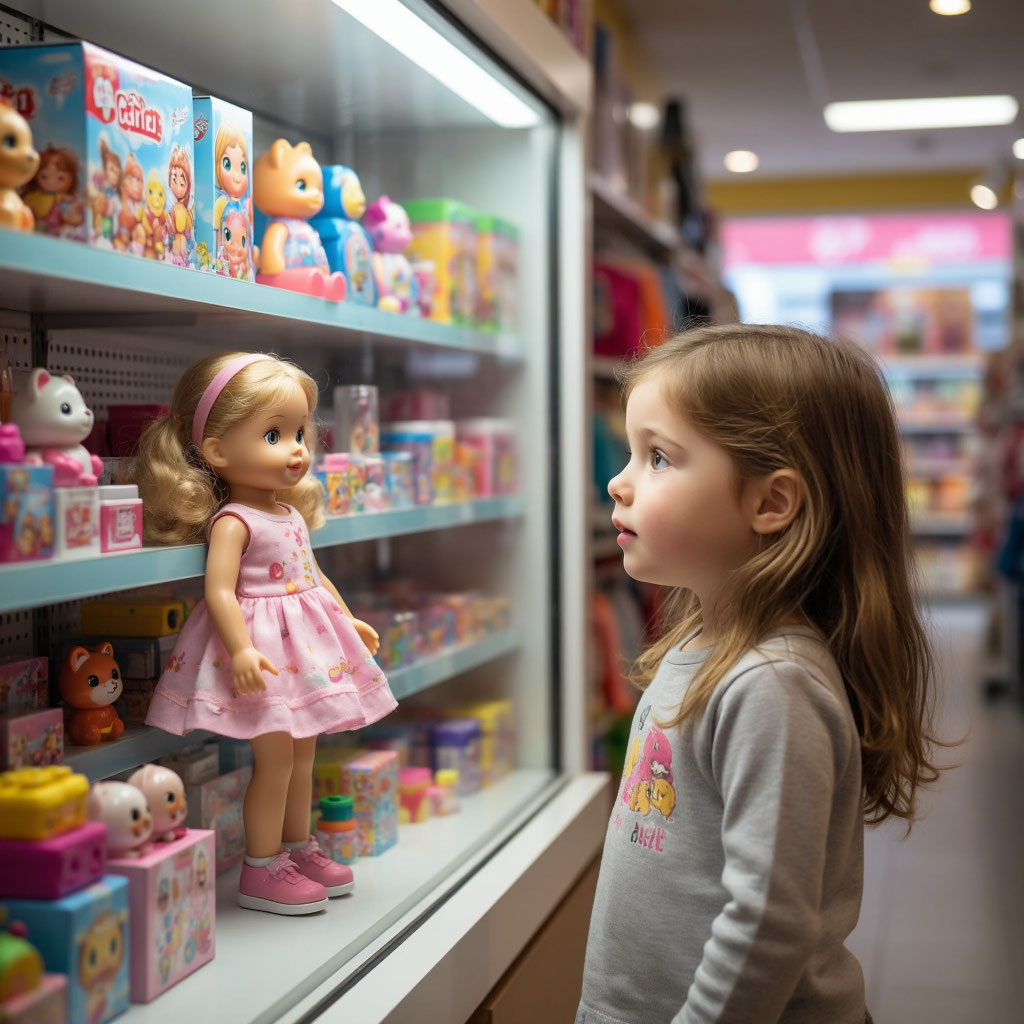 Но стоило нам выйти из обувного отдела, Лиза замерла у витрины с куклами.