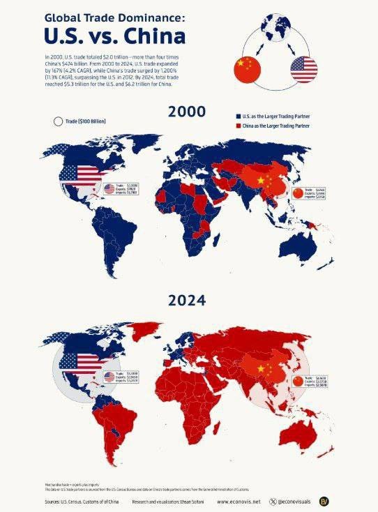 At the start of this century, the U.S. was the trade champ 🏆, but by the end of Q1, China swooped in to take the title! 🌍💰 Who saw that coming? #TradeWars #GlobalEconomy