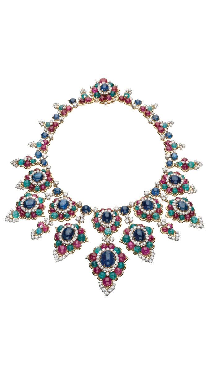 В конце 1950-1960-х Bulgari переживает настоящий переворот в работе с цветом. После послевоенной моды на белые металлы и бриллианты бренд постепенно формирует собственный стиль, переходя к жёлтому золоту, более чётким и компактным формам и главным образом - к смелой работе с цветом. Украшения становятся многокрасочными, а комбинации камней всё более дерзкими: изумруды, сапфиры, рубины и другие драгоценные камни выбирают по принципу выразительности оттенков. В эти же годы появляются знаменитые дрожащие броши в технике en tremblant (подвижные крепления позволяют драгоценным камням дрожать при движении, словно они живые), а кабошон-огранка, за счет которой камни смотрелись еще выразительнее, становится фирменным приёмом Bulgari. Так рождается новая итальянская школа ювелирного искусства. Именно тогда, как мне кажется, у Bulgari сформировался тот характер, который до сих пор делает их работу особенной. На фото можно увидеть, как дерзость цвета и уверенность формы продолжают оставаться одни