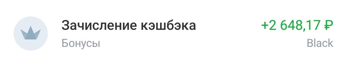 1. Пришел кэшбэк от Т-банка 2648,17 руб. За вычетом продуктов со 100% кэшбэком, получается 1226,99 руб.