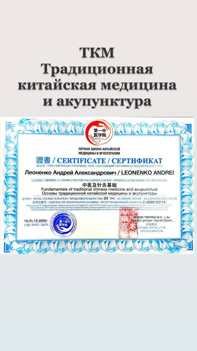 Закончил очередной курс повышения квалификации по ТКМ и приглашаю на прием. Ваш врач остеопат, иглорефлексотерапевт, Андрей Леоненко @osteomedpro ПОДПИШИСЬ 👇👇👇 Канал в Telegram https://t.me/acumedpro/235 #ткм #акупунктура #иглоукалывание #рефлексотерапия #иглонож #Тигла #Sигла #остеопатлеоненко
