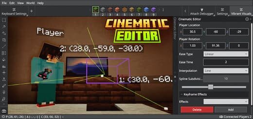 Почувствуйте себя настоящим режиссёром в мире Minecraft PE (Bedrock), получив полный контроль над камерой для создания эффектных кинематографических сцен, трейлеров и атмосферных видеороликов прямо внутри игры. Мод Cinematic Editor (Cinematic) представляет собой мощный инструмент для съёмки кат-сцен и машинимы в Майнкрафт ПЕ (Бедрок). Аддон позволяет точно управлять камерой: задавать направление движения, угол обзора и плавные переходы между кадрами. Это решение идеально подходит для авторов карт, строителей масштабных проектов и создателей контента, которые хотят показать свои миры с профессиональной подачей. Мод состоит из двух частей: редактора сцен, предназначенного для работы на Windows, и Runtime-версии, позволяющей воспроизводить готовые сцены на любых устройствах — от смартфонов до консолей. Ключевое преимущество аддона — высокий уровень гибкости и точности, сравнимый с профессиональными видеоредакторами. Камера может перемещаться по сложным траекториям с плавным вращением и ко