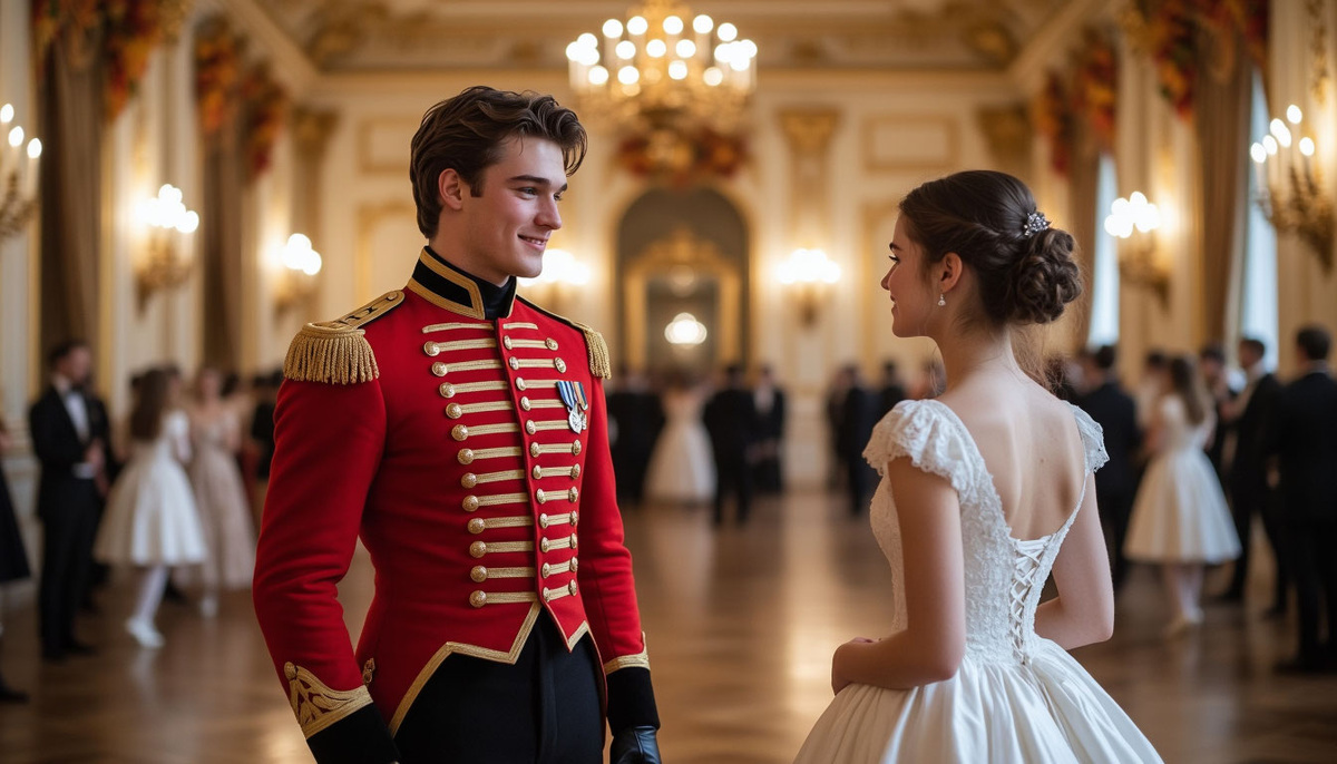 Он вошёл вместе с командиром полка и сразу привлёк взгляды: небрежно поклонился губернатору, тепло улыбался в ответ на комплименты, а его взгляд скользил по лицам, словно он искал кого‑то. Елизавета стояла у окна, держа в руках бокал лимонада. Когда Александр оказался неподалёку, она почувствовала, как кровь прилила к щекам.