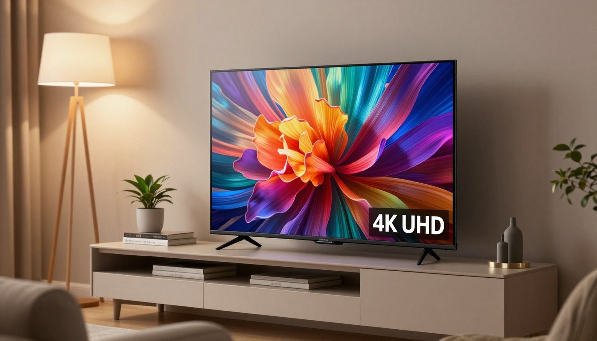 Телевизор оснащен 4K UHD дисплеем, обеспечивающим высокое разрешение и детализацию изображения. Разрешение экрана составляет 3840 x 2160 пикселей, что позволяет наслаждаться четким и ярким изображением.