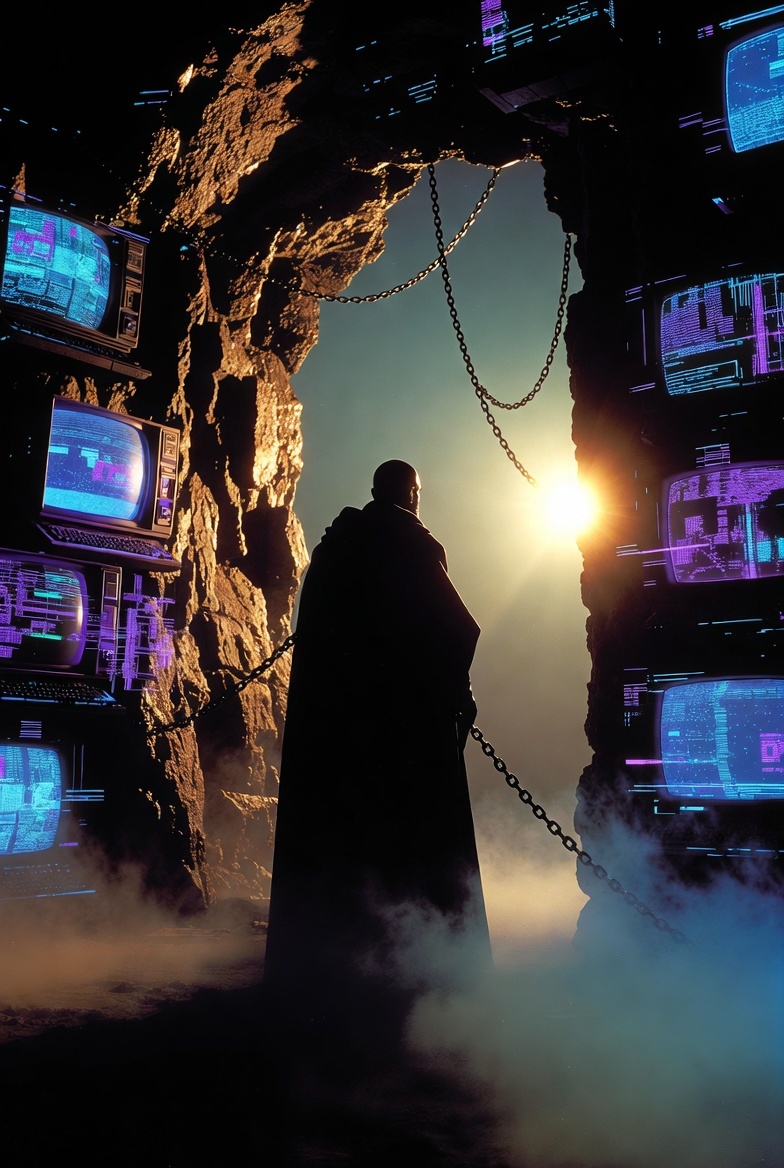 - Мы живём в той же пещере. Экраны — наша стена. Новости, мнения, тренды — тени в руках кукловодов. Политика — тень справедливости. Успех — тень добра. Мы спорим о тенях, принимая их за жизнь. Алгоритмы и интересы держат нас в цепях.
