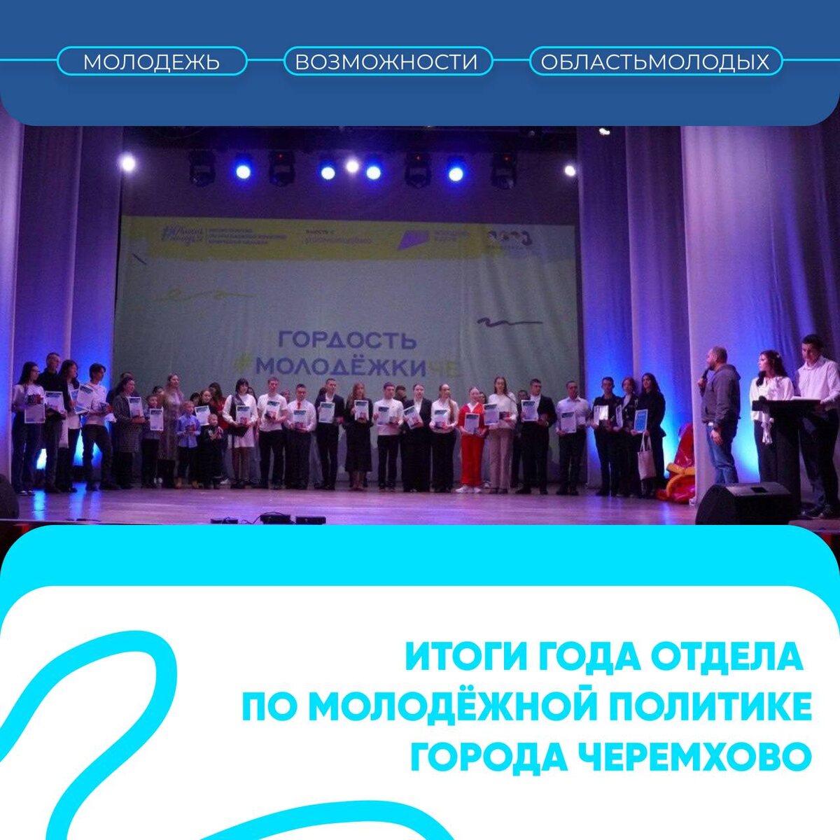 !✨ 2025 год был ярким и насыщенным! В Черемхово состоялся Фестиваль «100% молодости», где были подведены итоги года. 🔵В номинации «Партнер года» награждены те, кто создавал возможности для молодёжи; 🔵«Мы это сделали!» отметили всех, кто помог реализовать программу «Регион для молодых»; 🔵«Приближая Победу» — волонтеров штаба #МЫВМЕСТЕ, поддерживающих семьи; военнослужащих; 🔵В «Гордость #МолодежкиЧе» — активистов и лидеры, вдохновляющие молодёжь Черемхово. Теперь молодежь Черемхово держит курс на не менее классный и богатый на события 2026-ой! ▫️ Подписывайтесь на Область Молодых в Max | Подписывайтесь на наши социальные сети