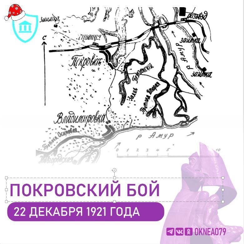 Покровка (ныне п. Приамурский) произошел бой частей Народно-революционной армии с наступающими частями белоповстанцев. Этот бойВ этот день на территории с. Покровка (ныне п. Приамурский) произошел бой частей Народно-революционной армии с наступающими частями белоповстанцев. Этот бой временно задержал белоповстанцев, что позволило стянуть все отступающие части Народно-революционной армии на станцию Ин. В неравном бою погибли 22 бойца. Тела погибших были захоронены местными жителями в братской могиле на окраине с. Покровка на небольшой песчаной сопке. 22 октября 1972 года состоялось торжественное перезахоронение останков 22 народоармейцев и партизан в центр поселка Приамурский. Урна с прахом была доставлена к сооруженному памятнику (автор – Н.К. Геец). Памятный знак изготовлен в художественной мастерской г. Хабаровска по заказу Смидовичского райисполкома. Захоронение является объектом культурного наследия регионального значения «Братская могила народоармейцев и партизан, погибших в бо