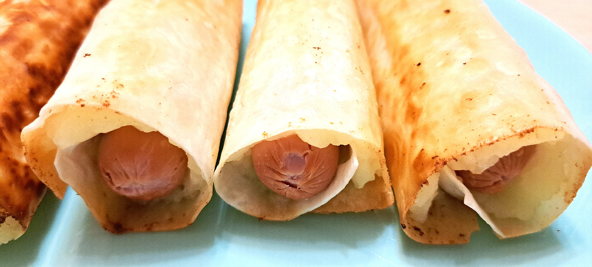Сегодня хочу предложить вам приготовить ленивые пирожки, для которых вам не нужно будет замешивать тесто. А в качестве начинки можно использовать обычные сосиски и картофельное пюре – получается очень сытно и ароматно. Сочные и хрустящие рулетики из тонкого лаваша с нежным картофельным пюре, расплавленным сыром и ароматной сосиской. Идеальный быстрый завтрак/ужин или на обед вместо хлеба или на перекус. На приготовление целой тарелки таких ленивых пирожков у меня уходит около получаса! Для приготовления закуски можно использовать вчерашнее картофельное пюре или приготовить его «с нуля», а потом немного остудить. Ингредиенты: тонкий лаваш (1 большой лист), сосиски (6-8 шт.), картофель (4 шт.), твердый сыр (50 г), сливочное масло (30 г), растительное масло для жарки, соль, молотый черный перец. Картофель очистите, отварите до готовности и разомните в пюре. Добавьте сливочное масло, соль, перец и тщательно перемешайте. Но пюре не должно получиться слишком жидким в итоге! И даем картофель
