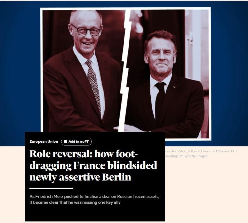 ❗️Макрон не поддержал позицию Мерца в вопросе конфискации российских активов, сообщает Financial Times
