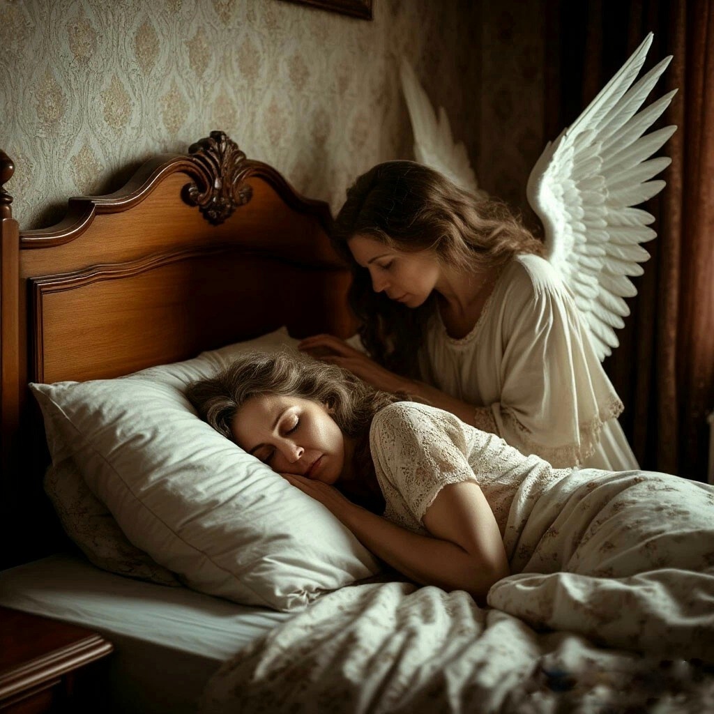 В комнате было темно, но воздух странно мерцал, словно в нём растворили серебряную пыль. У кровати, неслышимый и невидимый, стоял Он. Высокая фигура, сотканная не из плоти, а из света и тишины. Ангел смотрел на женщину, свернувшуюся калачиком под старым шерстяным одеялом. Он видел не её морщинки и седину, а ту огромную тяжесть, что лежала на её хрупких плечах. Видел её страх за сына, её боль в позвоночнике, её исколотые пальцы.