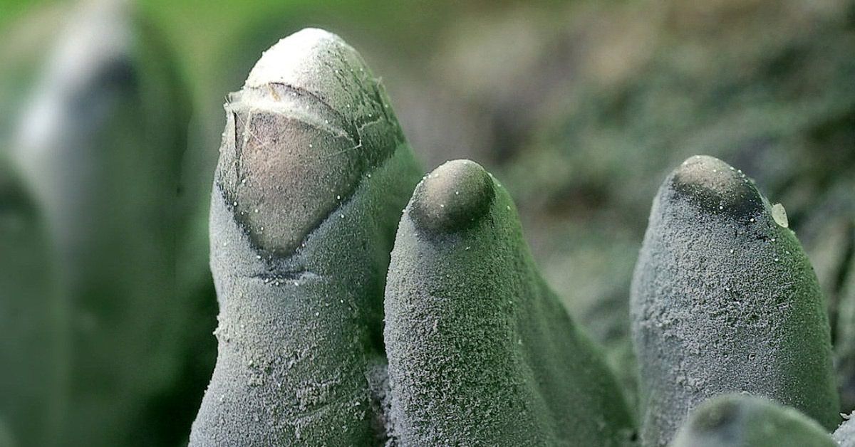 Если увидите это в лесу — не звоните в полицию. Это просто гриб. Хотя первый импульс — проверить, не пропал ли в этом районе сосед, который брал у вас перфоратор. Он выглядит как посиневшие человеческие пальцы, торчащие из земли. Будто кто-то пытался выбраться наружу и понял, что ипотека всё равно догонит. На самом деле перед вами гриб с говорящим русским названием «Пальцы мертвеца». Учёные, конечно, называют его Xylaria polymorpha, потому что «Пальцы мертвеца» - это для людей, а латынь - чтобы гриб выглядел прилично в научной статье. Этот гриб растёт на гниющих пнях и корнях бука, дуба и вяза. Часто — прямо из земли, потому что питается подземными корнями. Отсюда и эффект «руки лезут из могилы». Особенно бодрит при встрече в сумерках. Внешность меняется по сезонам — и это ключевой момент. Весной «пальцы» бледные, синевато-серые, с белыми кончиками. Это слой спор — миллионы микрочастиц, готовых разлететься по лесу. Именно этот «пыльный» слой придает ему мертвенно-бледный вид. Со време