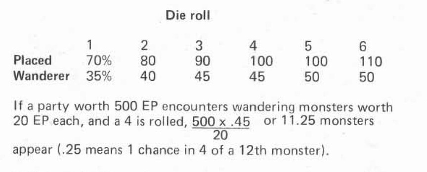 Если ведущий записывает конкретное число для каждого размещённого или блуждающего монстра, он может обнаружить, что их слишком мало или слишком много для силы группы — слишком сложно контролировать силу каждой группы, входящей в подземелье. С другой стороны, если единственным способом определить количество монстров является произвол, ведущий, вероятно, начнёт манипулировать игрой нечестно.