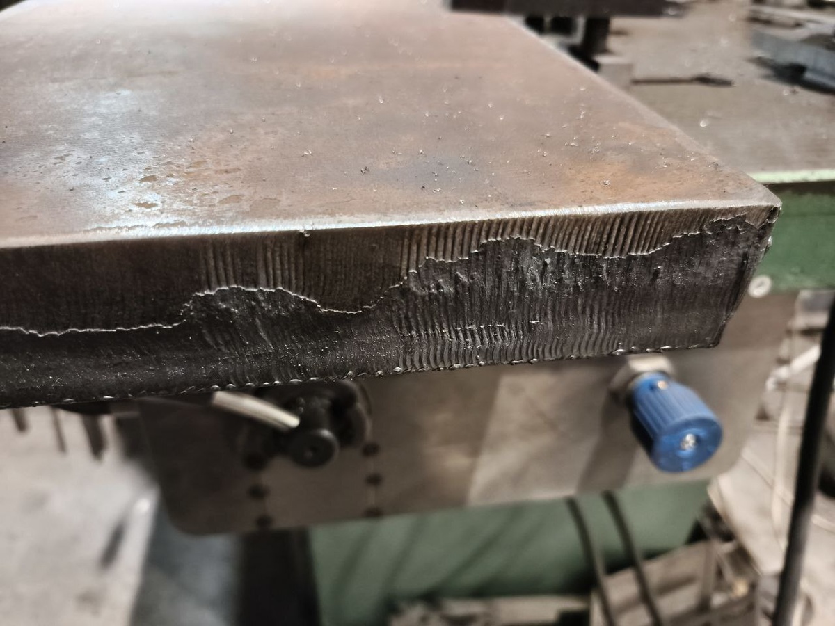 Добрейшего денёчка, уважаемые. Сегодня у нас в программе немного повышенной точноты. Смысл затеи следующий - люди делают какие-то очень хитрые лазеры и для шлифовки кольцевых рубинов им нужен микроскопический, но очень точный круглошлифовальный станочек. Собсна, мобирается он из прецизионных комплектующих, ну типа суппортная группа покупная, воздушный шпиндель. А вот навесить это надо всё на некое основание. Ну а это уже в наш цех "Грязный Микрон". Станкостроение начинается с приобретения всратого жалеза, грубо разделанного плазмой с припуском в 5 см. Далее переходу на вертикальную ленточную пилу и обрезаю лишнее. Ну а более мелкие детальки просто выпиливаю из куска. Теперь очередь шлифовки. Сейчас она черновая и не размерная, а просто чтобы создать плоскости. Соответственно, видно некоторый шифер и некоторые прижоги. Торцы шлифовать несколько сложнее, но тоже реально. Ставишь магнитную плиту на магнитную плиту и погнали. Благо что по горизонтали, что по вертикали у пятитонного польско