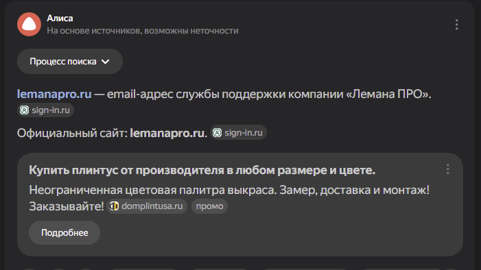 Яндекс стал скрывать email в выдаче запросов через Алису