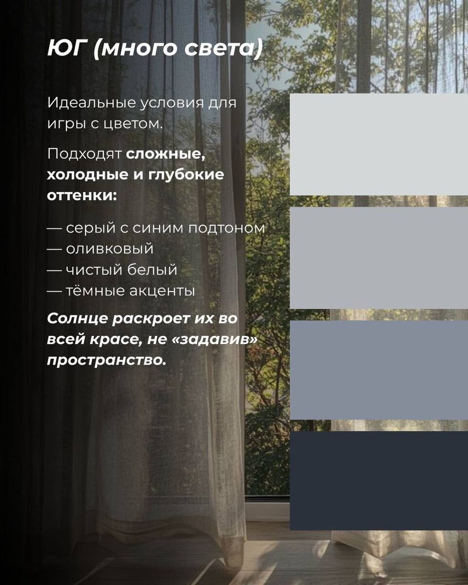 ? Сторона света, куда выходят окна вашей квартиры. ✨ Утро заливает комнату тёплым светом, превращая белые стены в золотые, а вечером они вдруг кажутся серыми. Или вот ещё пример: белый на северной стороне кажется грязным, а бежевый на востоке приобретает неожиданный зелёный отлив после обеда. Всё дело в свете. Чтобы ваш интерьер выглядел гармонично, учитывайте, откуда падает свет. Северные стены любят тёплые оттенки, южные разрешают яркие эксперименты, восточным нужен баланс, а западные прекрасно сочетаются с мягкими тёплыми красками. Вот вам лайфхак, который сэкономит нервы и деньги: правильно подобранный цвет сегодня избавляет вас от головной боли завтра. ✨Поделитесь этим советом с друзьями, ведь иногда одно сообщение способно спасти чью-то квартиру от неудачного ремонта.✨ #ремонт #интерьер #выборцвета #светодизайн #декор
