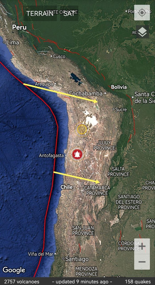 Наблюдается мощная дегазация на севере Чили и Аргентины (М7+)