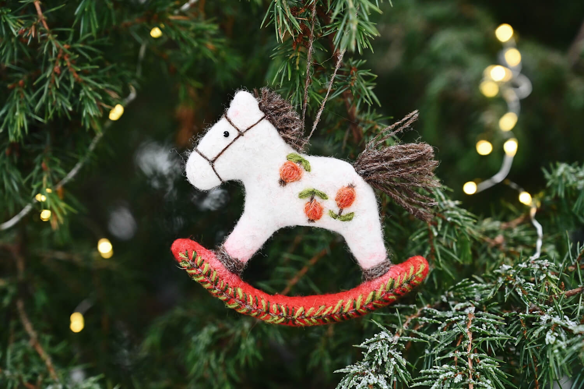 Деревянные украшения могут быть гладкими или с естественной текстурой, с гравировкой или простым рисунком. Войлок приятен на ощупь, безопасен для детей и позволяет создавать фигурки любых форм: оленей, звёзд, птиц.