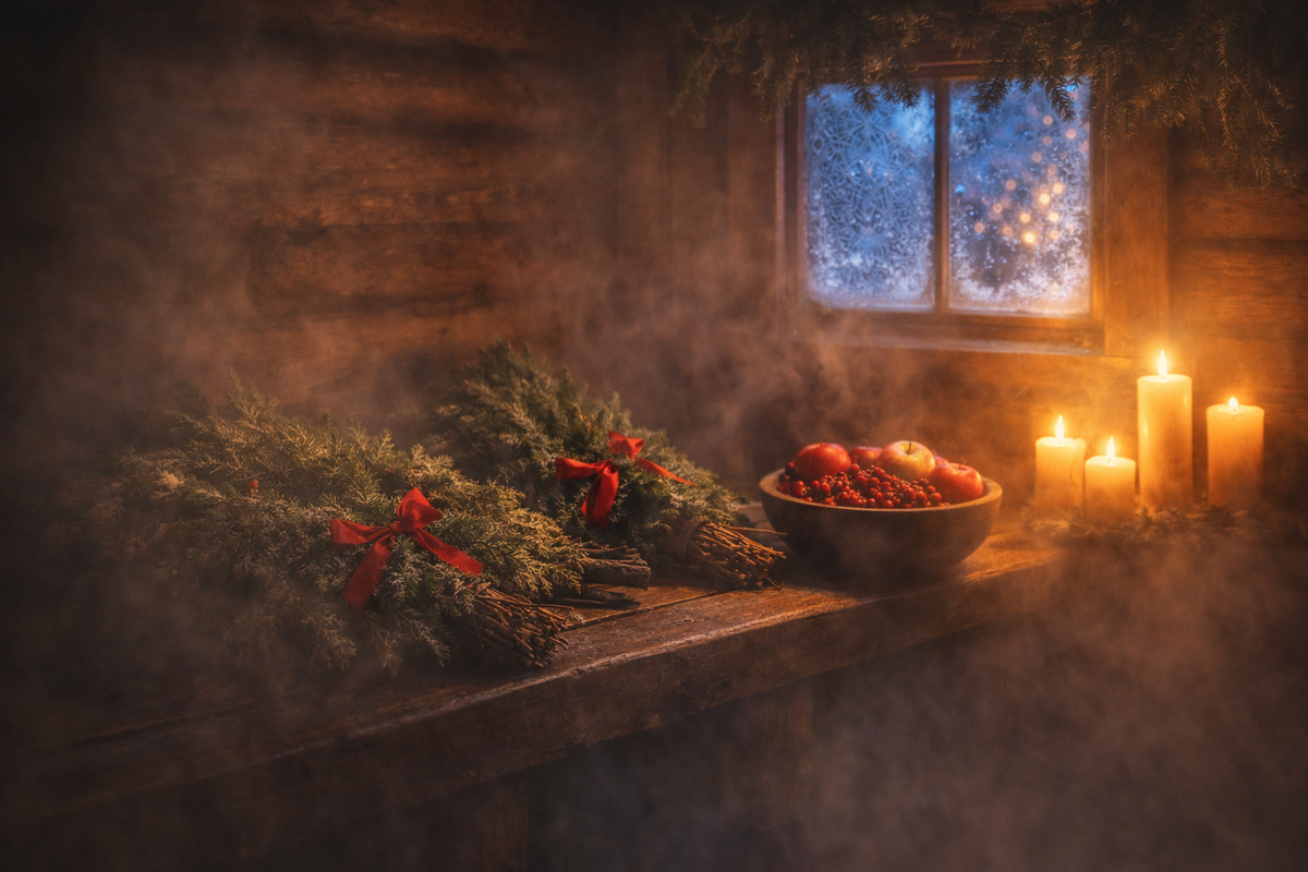 Для наших предков Новый год был не просто сменой даты. Это был переход - из одного жизненного цикла в другой. И входить в этот переход «неочищенным» считалось опасным. Именно поэтому перед Новым годом на Руси обязательно шли в баню. Но баня в этом ритуале была далеко не про гигиену. В традиционной русской культуре баня занимала особое место. Её не считали обычным хозяйственным строением. Баня стояла на границе: между домом и лесом, между тёплым и холодным, между миром живых и миром духов. Считалось, что именно в бане человек: Поэтому баня всегда сопровождала переходные моменты жизни: рождение, свадьбу, большие праздники - и, конечно, начало нового года. На Руси верили, что всё, с чем человек входит в Новый год, он унесёт с собой дальше. Перед праздником важно было: Парение воспринималось как обряд очищения судьбы. Горячий пар символизировал огонь, который «сжигает» плохое, а вода - уносит его прочь. Не случайно говорили: «Как пропаришься - так год и пойдёт». Именно зимняя баня считалас