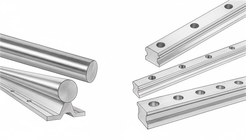 Линейные направляющие обеспечивают контролируемое перемещение элементов в механизмах — от подачи заготовок до точного позиционирования узлов. Их конструкция определяет траекторию движения и стабильность работы оборудования. С ростом требований появились системы на основе валов, где ключевым элементом стал прецизионный вал с высокой точностью геометрии и качеством поверхности. Движение основано на принципе качения: подвижный узел перемещается через контакт тел качения с дорожками направляющего элемента. Это снижает трение, равномерно распределяет нагрузку и увеличивает срок службы системы. В отличие от направляющих скольжения, где трение зависит от смазки, в системах качения точность задаётся геометрией компонентов, обеспечивая стабильную работу при разных нагрузках и скоростях. Контакт с направляющей осуществляется через линейный подшипник, внутри которого шарики или ролики движутся по циркуляционной схеме. В валовых системах подшипник охватывает цилиндрическую поверхность — качество е