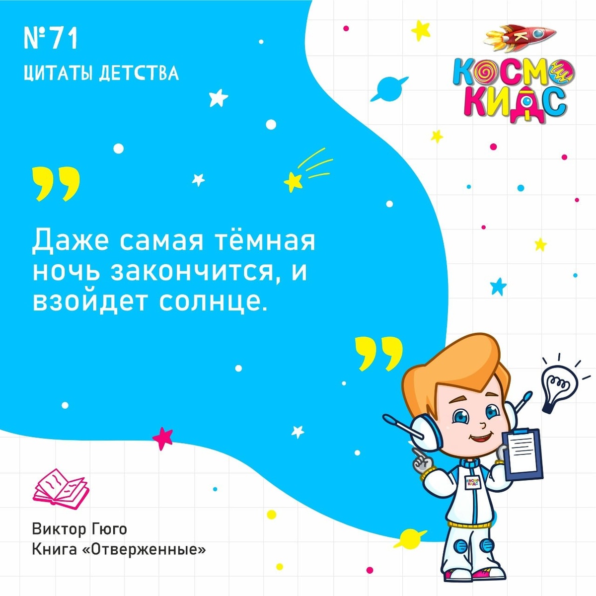 «Даже самая тёмная ночь закончится, и взойдет солнце» Виктор Гюго, «Отверженные» ------------------------— Ждём вас в детском саду и на занятиях в #КосмоКидс! Быстрая связь с нами: kosmokids.online #космокидс #детскийсад #дети #космокидсдетям #цитаты #детскиекниги #детскиецитаты