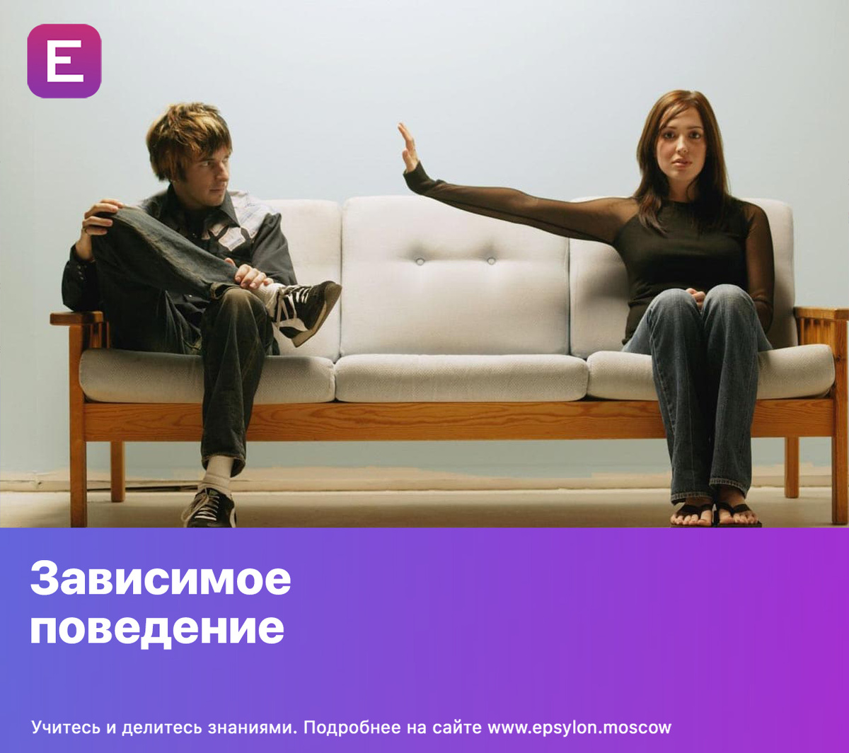 Зависимое поведение - это когда человек справляется со своей сепарационной тревогой за счёт объединения с чем-то или кем-то вовне. Этот вынесенный вовне объект (даже если он живой, его вряд ли можно назвать "субъектом", так как отношения с ним сугубо функциональные) жизненно необходим зависимым как воздух. Такими объектами могут быть: люди, животные, пища, секс, химические вещества, компьютерные игры, азартные игры, работа, религиозные культы и т.п. Клинические критерии, объединяющие все виды патологической зависимости (включая психологическую): 1. выраженная потребность или необходимость ... (принять вещество) или совершить зависимое действие; 2. нарушение способности контролировать начало, окончание и ... дозировки (вещества или поведения); 3. физиологическое и психологические состояние отмены (абстинентный синдром); 4. повышение толерантности к потреблению вещества (привыкание ко всё большей величине стимула); 5. прогрессирующее сужение альтернативных интересов и забвение других (по