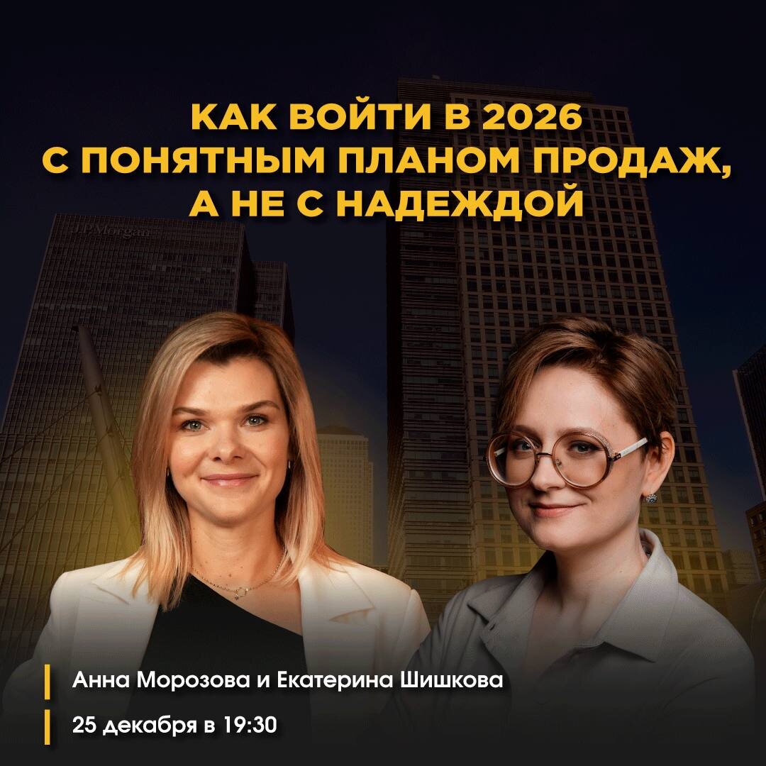 👋 Конец года — это не только отчёты и усталость. Это редкий момент, когда можно остановиться и честно посмотреть: что в продажах реально работает, а что держится только на надежде. 25 декабря мы проведём открытый онлайн-эфир для специалистов рынка недвижимости — «Как войти в 2026 с понятным планом продаж, а не с надеждой». Эфир мы делаем вместе с Катей Шишковой (её канал:https://dzen.ru/id/5e6b6ed00078a67f9fe6cc2e). И ключевая идея проста: не мотивация и не абстрактные разговоры, а спокойная, профессиональная работа с реальностью рынка, цифрами и решениями. Зачем приходить Потому что 2026 год, скорее всего: не станет проще сам по себе; потребует большей системности и точности в продажах; не оставит много пространства для импровизации. На эфире разберём: — какие выводы важно сделать по итогам 2025 года, даже если год был непростым; — какие сценарии рынка 2026 стоит учитывать при планировании; — как ставить цели, которые можно посчитать и проверить; — как разложить цели в конкре