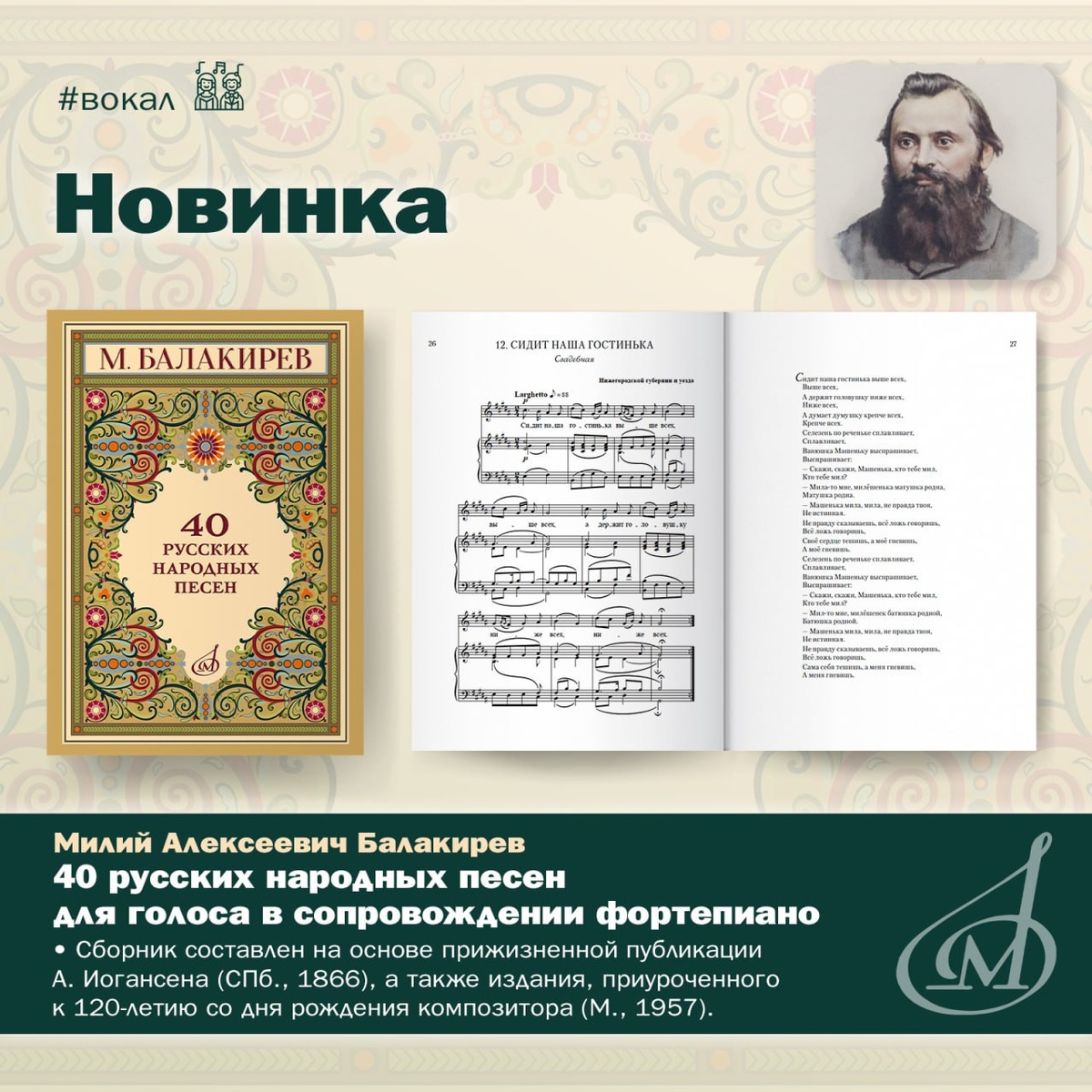 Балакирев. 40 русских народных песен для голоса в сопровождении фортепиано Балакирев вошёл в историю русской музыки как один из главных знатоков русской народной песни. Рассказываем об одном из его знаковых собраний. 🤎На протяжении всего творческого пути одним из главных художественных идеалов для Балакирева было творчество Глинки. Идею взращивания русской музыкальной классики на почве народной песни он почерпнул из его «Камаринской», испанских увертюр и, конечно же, из опер. Поэтому логичным продолжением стали инициатива самостоятельного сбора аутентичного народно-песенного материала и его обработка. Позднее П. И. Чайковский писал: «Чтобы записать и гармонизовать народную русскую песню, не исказив её, нужно такое капитальное и всестороннее дарование, каким обладал Балакирев». 🤎В настоящий сборник вошли песни, собранные Балакиревым вместе с поэтом Н. Ф. Щербиной в летней поездке по Волге в 1860 году. Ими был проделан путь от Нижнего Новгорода, малой родины композитора, до Астраха