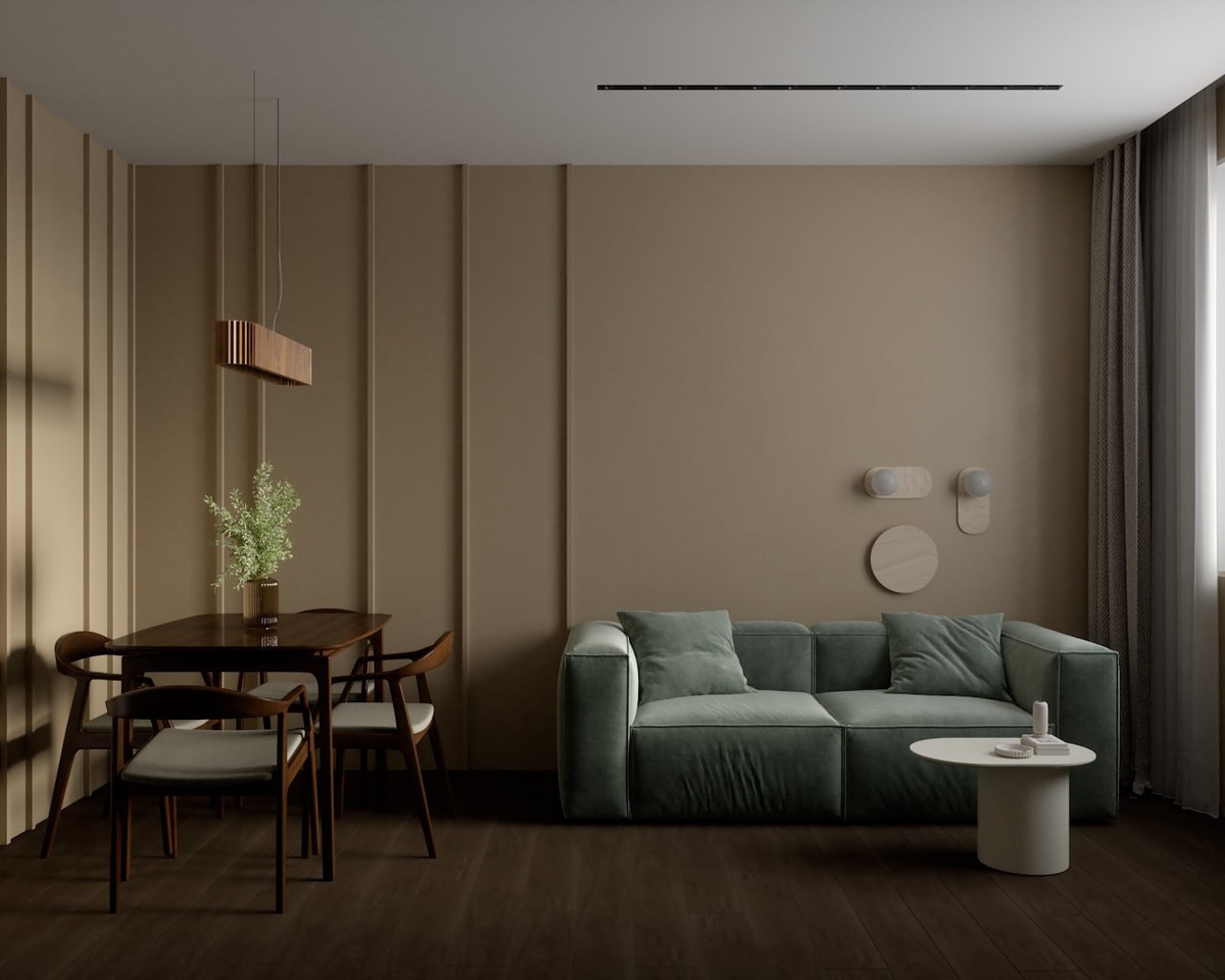 Здесь нет гонки за декором — только нужные вещи, натуральные материалы и функциональность, которая не спорит с красотой, а поддерживает её.