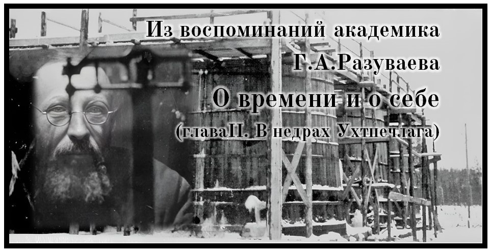 « В Воркутинских лагерях я работал на шахтах, сортировал уголь, измерял каждый день, сколько выработали угля. Потом попал в лабораторию, где проводились анализы угля. Летом отправляли на этап, на промысел, где обрабатывали и корчевали деревья и пилили лес. Лесоповал продолжался до дождей, а потом снова вахта. Неожиданно меня отправили под Архангельск. В тех северных краях (теперь это район города Северодвинск) я почти полтора года работал преподавателем-воспитателем в колонии малолетних преступников. Здесь были разные дети, много детей раскулаченных... Мое учительское время считаю вполне терпимым, хотя кормили отвратительно. Я преподавал физику, химию, иностранные языки. Обучались двенадцати - пятнадцатилетние дети». Летом 1937г, так же неожиданно Разуваева вернули в Ухтпечлаг, в поселок Чибью и отправили на общие работы. «Два лета и зиму проработал я на лесоповале. Лето было еще туда-сюда, весной шли дожди, и мы не просыхали, но тяжелее всего — холод. Одна неделя ниже пятидесяти. Если температура за пятьдесят, то работы прекращаются, день актируется. Самая низкая температура была минус пятьдесят шесть градусов. Мне было особенно трудно, так как дышишь, и замерзают очки... Работал я на сплаве леса: таскал из воды мокрые бревна. Они нагромождались в несколько рядов, скользкие, крутятся, и по ним приходится ходить, поэтому бежать надо быстро. Спиливали деревья, ветки, сдирали кору, чтобы бревна сохли. Бревна укладывали четырехугольником, а в середину бросали ветки, чтобы получалась большая куча. Такое сооружение мы называли "тухта". Её сдавали как уложенные бревна, за что была прибавка по сто граммов хлеба в день. Так мы хитрили...».