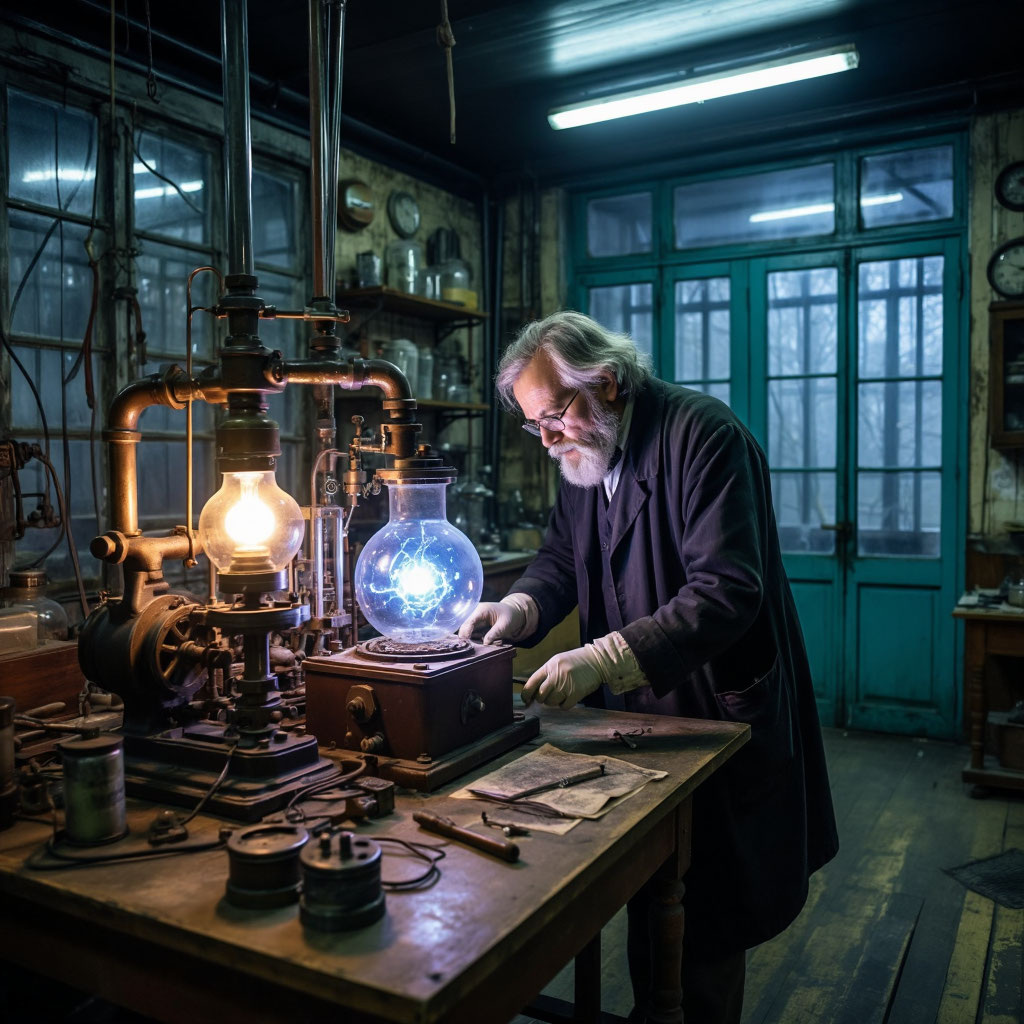 В глубинах засекреченной лаборатории, затерянной среди болот Архангельской области, трепетали неоновые огни. Профессор Арсеньев, потомок одного из учеников Менделеева, склонился над массивным аппаратом — гибридом парового котла, искрящих конденсаторов и циферблатов в латунных оправах.