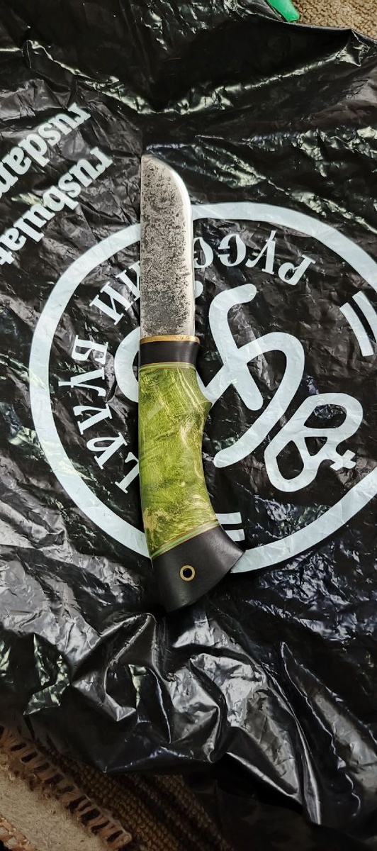 Нож грибник, ручная ковка 9хс, рукоять стабилизированный кап клёна, отправляется Владимиру в г. Самару