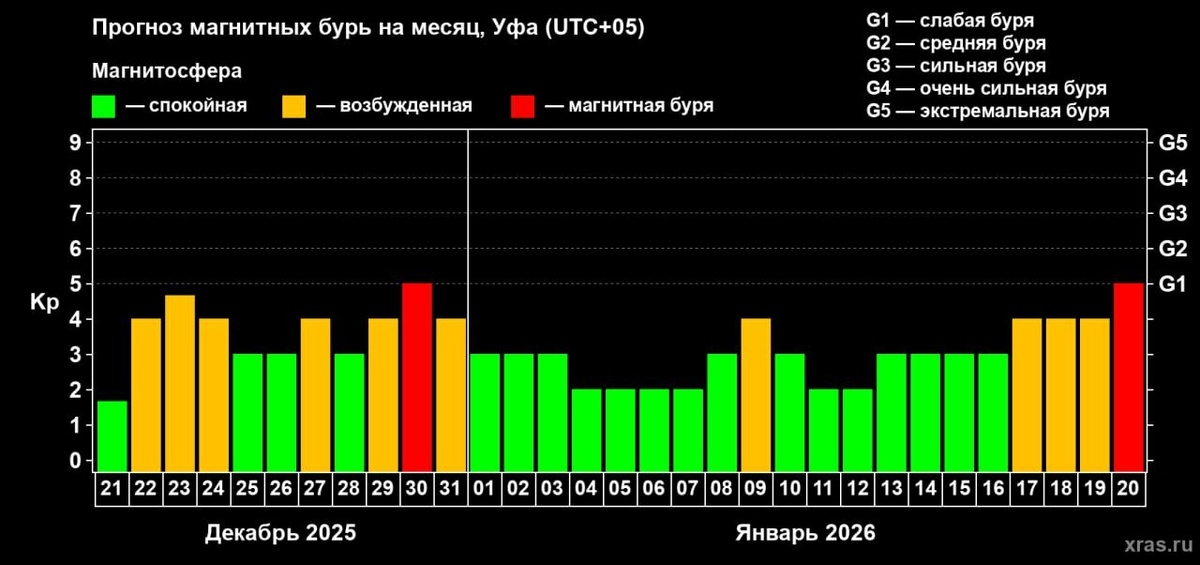 Об этом сообщили в лаборатории солнечной астрономии ИКИ РАН. По данным ученых, явление следует ожидать 30 декабря. Колебания магнитного поля провоцируют у многих людей сильное ухудшение состояния. Особо чувствительные к изменениям в атмосфере люди ощущают дискомфорт за сутки до начала магнитной бури и даже раньше. Чаще всего сначала усиливаются болезненные ощущения в суставах. Важно помнить, что на самочувствие влияют не только колебания магнитного поля, но ещё и уровень атмосферного давления и влажность. В комплексе эти факторы окружающей среды способны ощутимо снижать работоспособность человека. Чувствительность к смене погоды связана с состоянием вегетативной нервной системы, а она во многом зависит от генетической предрасположенности и конституции тела. Также на чувствительность к перемене погоды могут влиять различные заболевания, в основном сердечно-сосудистые. Например, ишемическая болезнь сердца или артериальная гипертония. Кроме того, из-за магнитных бурь могут чувствовать себ