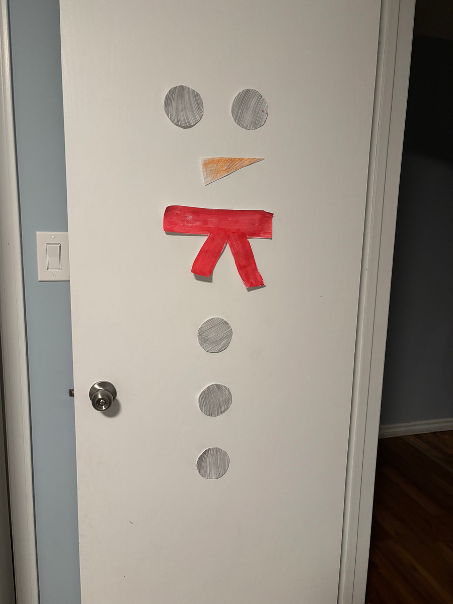 Сам уселся в кресло и написал записку: «Мне было слишком скучно ночью и я украсил вашу дверь. А еще мне сказал Санта, что у вас слишком грязно, чтобы приносить подарки. Пожалуй, лучше убрать, иначе…