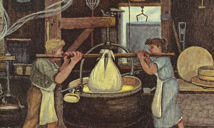 Новый этап в российском сыроделии начался при Петре I, который пригласил голландских мастеров для обучения русских сыроваров европейским технологиям. В 1795 году князь Иван Мещерский основал первый сыродельный завод в селе Лотошино, положив начало промышленному производству. В XIX веке ключевую роль сыграл Николай Верещагин (брат известного художника): он изучал технологии в Швейцарии и Голландии, организовал артельные сыроварни в Вологодской губернии и создал знаменитый Вологодский сыр с нежным ореховым вкусом.