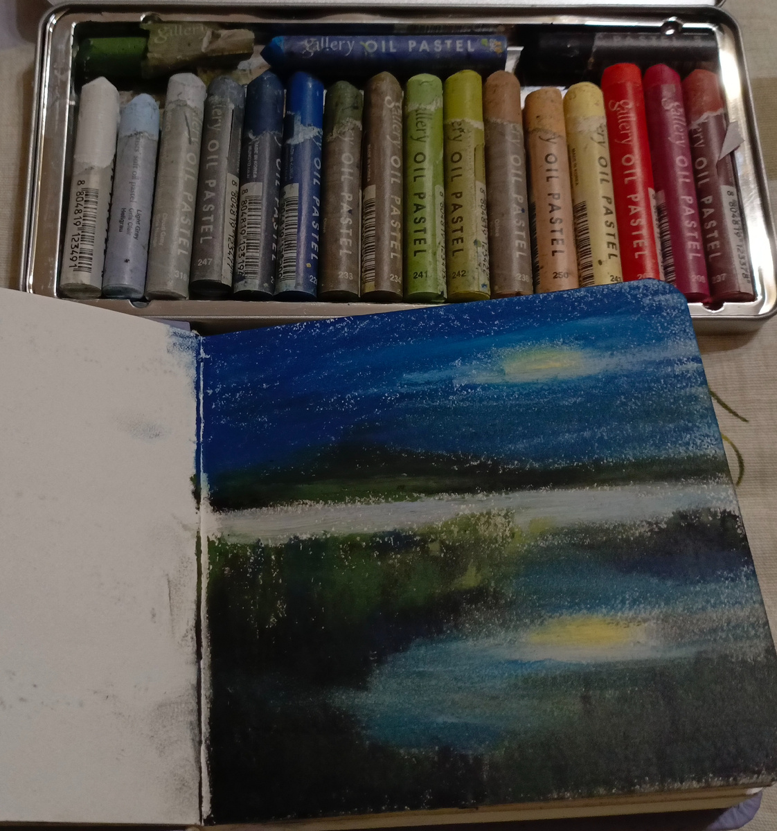 С портретами , точнее с людьми иногда в транспорте получается наброски делать и в планах в студию на наброски походить. Кое что нашла, по времени тоже вроде могу успеть, правда не каждый раз , но всё-таки. С пейзажами года три регулярно стараюсь по выходным выбираться на пленэр.