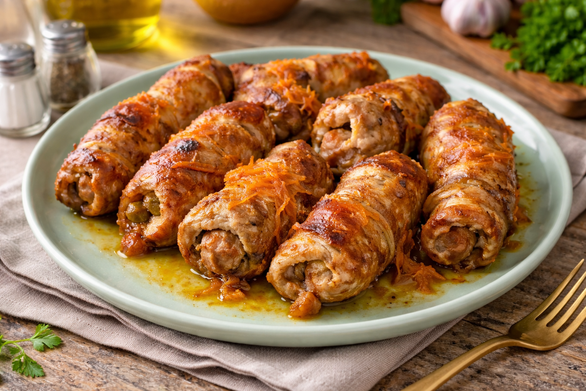 Здравствуйте, уважаемые гурманы и единомышленники по любви к вкусной еде! А что вы знаете о кручиниках или, как еще их называют, завиванцах. Это украинское блюдо из тонко нарезанного мяса завернутого в рулетики с начинкой внутри. Эти рулетики сначала обжаривают, а потом тушат с овощами. И сегодня вашему вниманию представляем один из простеньких вариантов этого блюда. Берем: Делаем: 1. Нарезаем свинину поперек волокон на пласты толщиной в палец (примерно 6-7 мм). Накрываем кусочки пищевой плёнкой и отбиваем его до тонкого состояния около 2-3 мм. 2. Солим и перчим каждый пласт с одной стороны. Затем обильно смазываем с этой же стороны горчицей. Кладём на край каждого мясного пласта по целому маленькому огурчику. Аккуратно, но плотно скручиваем мясо вокруг огурца в рулетик. Чтобы наш рулет не решил «распуститься» во время готовки, фиксируем его кулинарной нитью или шпажками. 3. Лук режем полукольцами, морковь трём на крупной тёрке. 4. На разогретой сковороде с маслом сначала обжариваем лу