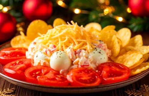 Салат-экспресс, который готовится буквально за пять минут из простых продуктов. Все ингредиенты нарезаются крупными кубиками, а вместо традиционных сухариков используются хрустящие чипсы. Благодаря такому составу салат сохраняет свежесть и моментально съедается — отличное решение для неожиданных гостей или быстрого перекуса.