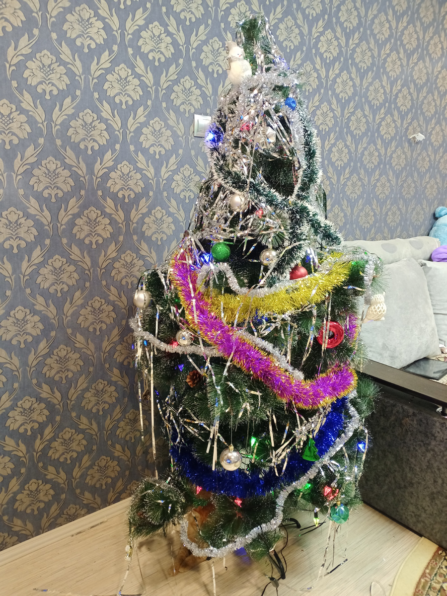 Поставили ёлочку дома. Украсили красиво, Ангелина, дочка, помогала. Смеялась, когда я пыталась надеть звезду на самую макушку, а она хихикала, подпрыгивая вокруг, сжимая в руке блестящий шар. Запах хвои наполнил всю квартиру, смешиваясь с ароматом мандаринов. Будто само волшебство поселилось у нас, прячась между пушистых веток.