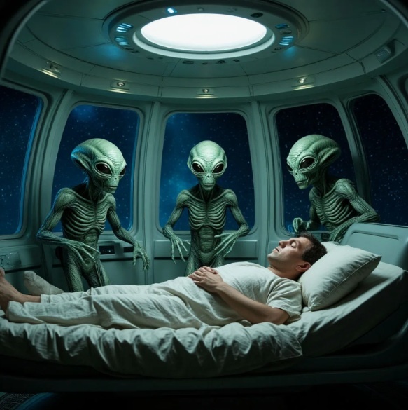 История женщины Я хочу рассказать о том, что случилось со мной и моим мужем. Сразу предупреждаю, что я не могу назвать даже город, в котором мы живем, так как это небезопасно. Началось все после поездки в Египет на отдых прошлой осенью. Обычный отпуск - ничего особенного. Но когда вернулись, нам стали сниться одинаковые сны. Вернее сказать, снились они не одновременно, однако содержание их совпадало до мелочей, когда мы сравнили, то ужаснулись. Основной сюжет сна такой. Мы без одежды лежим в одной комнате на кушетках, а над нами склонились какие-то «существа». Помещение при этом не похоже на операционную - совершенно нет медицинского оборудования. Потом поняли, что «существа» эти - роботы. Они закреплены на станинах возле нас и манипулируют над телами весьма странными инструментами, не прикасаясь к коже. Я вижу моего мужа рядом в зеркале на потолке, он видит меня. У него испуг на лице, и мне тоже страшно, но мы не можем пошевелиться. Короче, как в фильмах о похищении людей инопланетяна