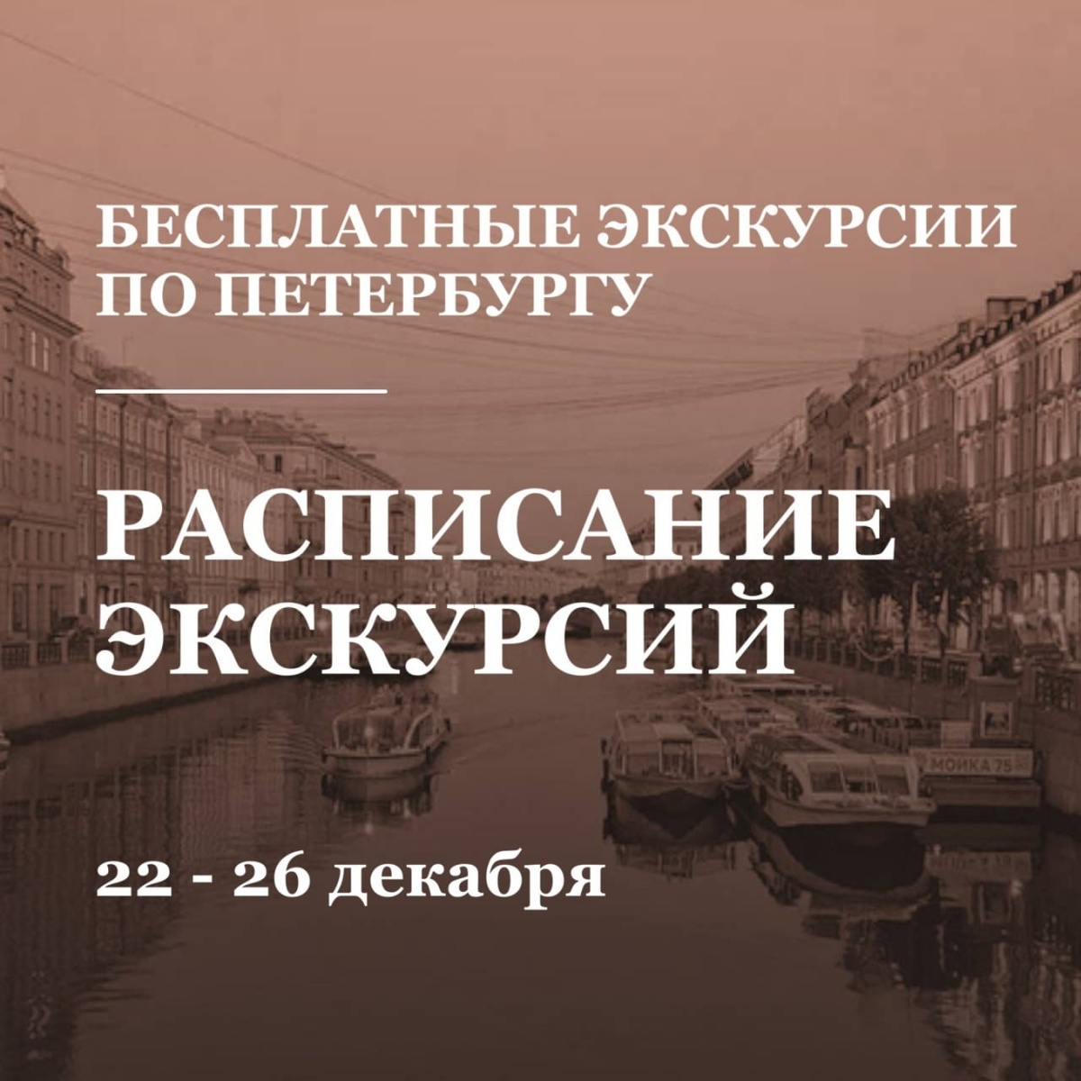 Друзья, расписание экскурсий с 22 по 26 декабря