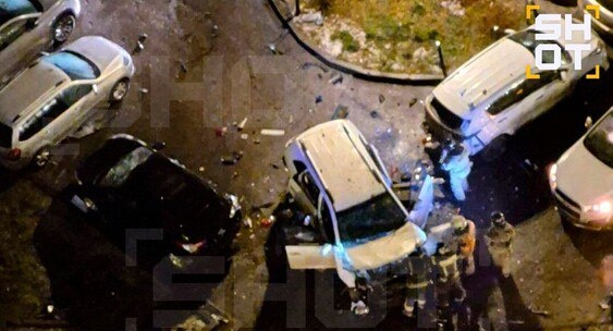Прямо сейчас спасатели пытаются вытащить водителя из автомобиля, который взорвался на парковке в Москве.