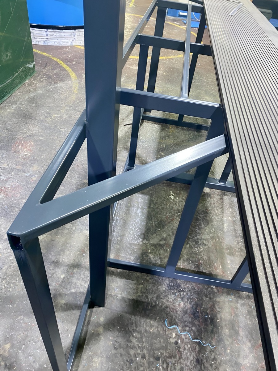 🙂 В этом проекте: — металлический каркас с порошковой окраской — ступени из монолитной доски ДПК — в финале — поручни и ограждения для безопасного потока гостей Пока подиум на стадии изготовления и выглядит «технически». Уже скоро доведём его до готового вида и покажем результат. 👍