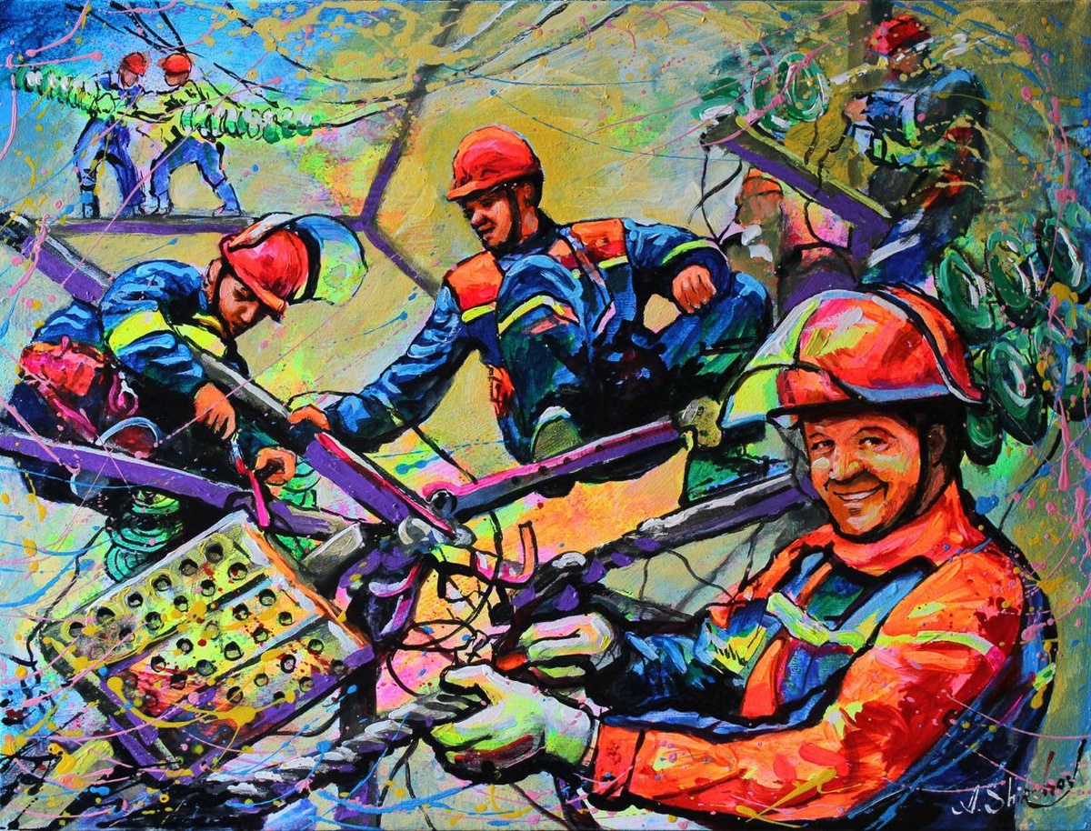 ). Электрики, монтажники, инженеры - это передовые войска армии Света, и это не фигура речи, это факт! Волшебники проводов и изоляторов, мастера волшебных киловатт, кудесники высотных монтажей и знатоки сопротивления и напряжения, Вам я посвящаю свою новую работу. Ваш труд настолько важен, что современный мир перестал видеть красоту и феноменальность мира Энергетики, вот я и подсвечиваю своими красками и пигментами. Хвала Вам, труженики Света! #картинавподарок #художникШиршов #картинамкслом #энергия #портретназаказ #деньэнергетика