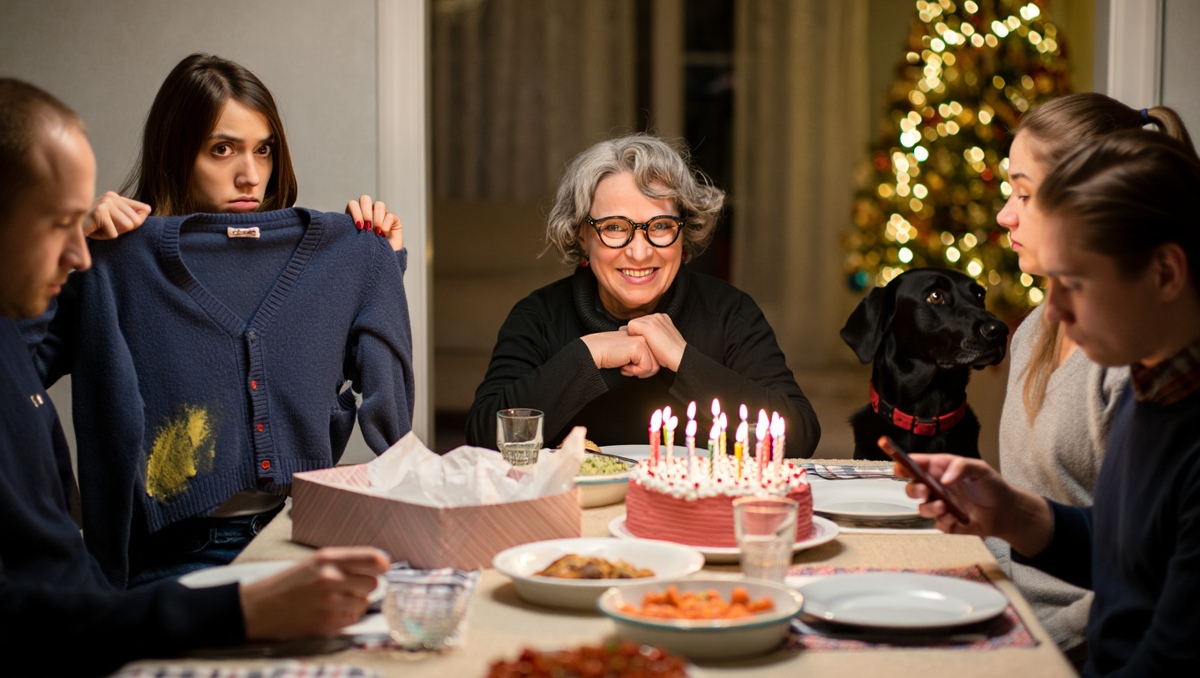 Я открыла коробку с подарком от свекрови и обнаружила там ношеную кофту с пятном на рукаве.
